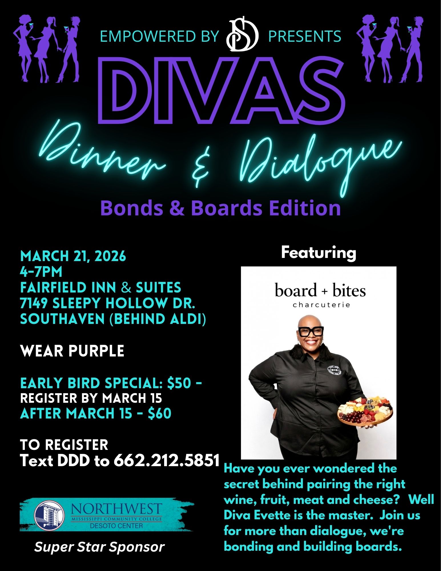 Well Diva Evette, owner of Board + Bites, is the master. Join us for more than dialogue, we’re bonding and building Charcuterie boards.